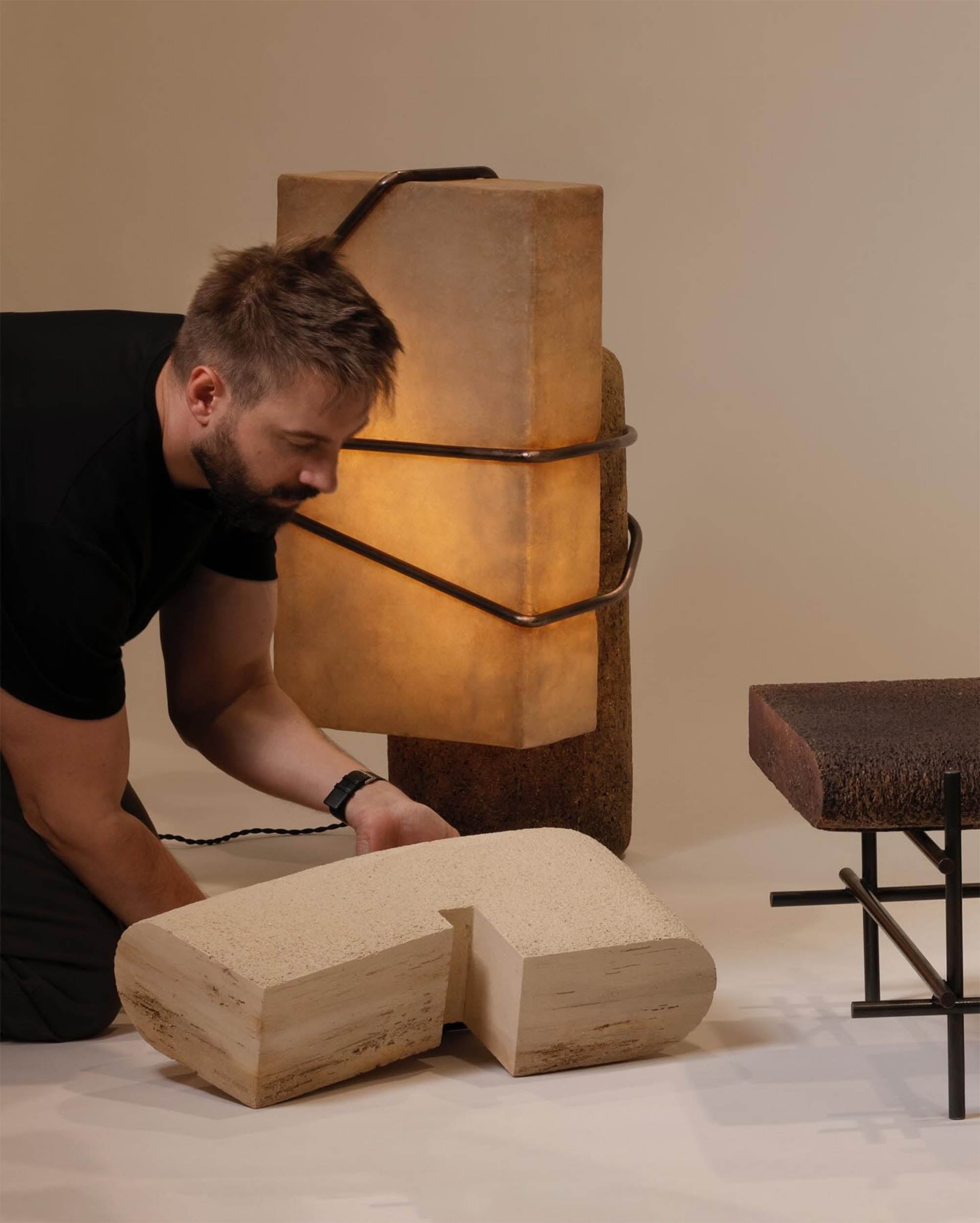 A polish born artist, cwIEK crafts striking stoneware sculptures that combine clean geometric forms and supple organic shapes. boldly traversing historical periods and aesthetic vocabularies, cwIEK is Inspired by sources as varied as the dynamic and energetic gestures of abstract expressionism, the ingenuity and craft of modernist industrial design, and the utilitarian minimalism of soviet Brutalism. These influences infuse his work with a thrilling sense of tension, in which the soft, emotional, and natural stands in counterpoint to the hard, intellectual, and urban