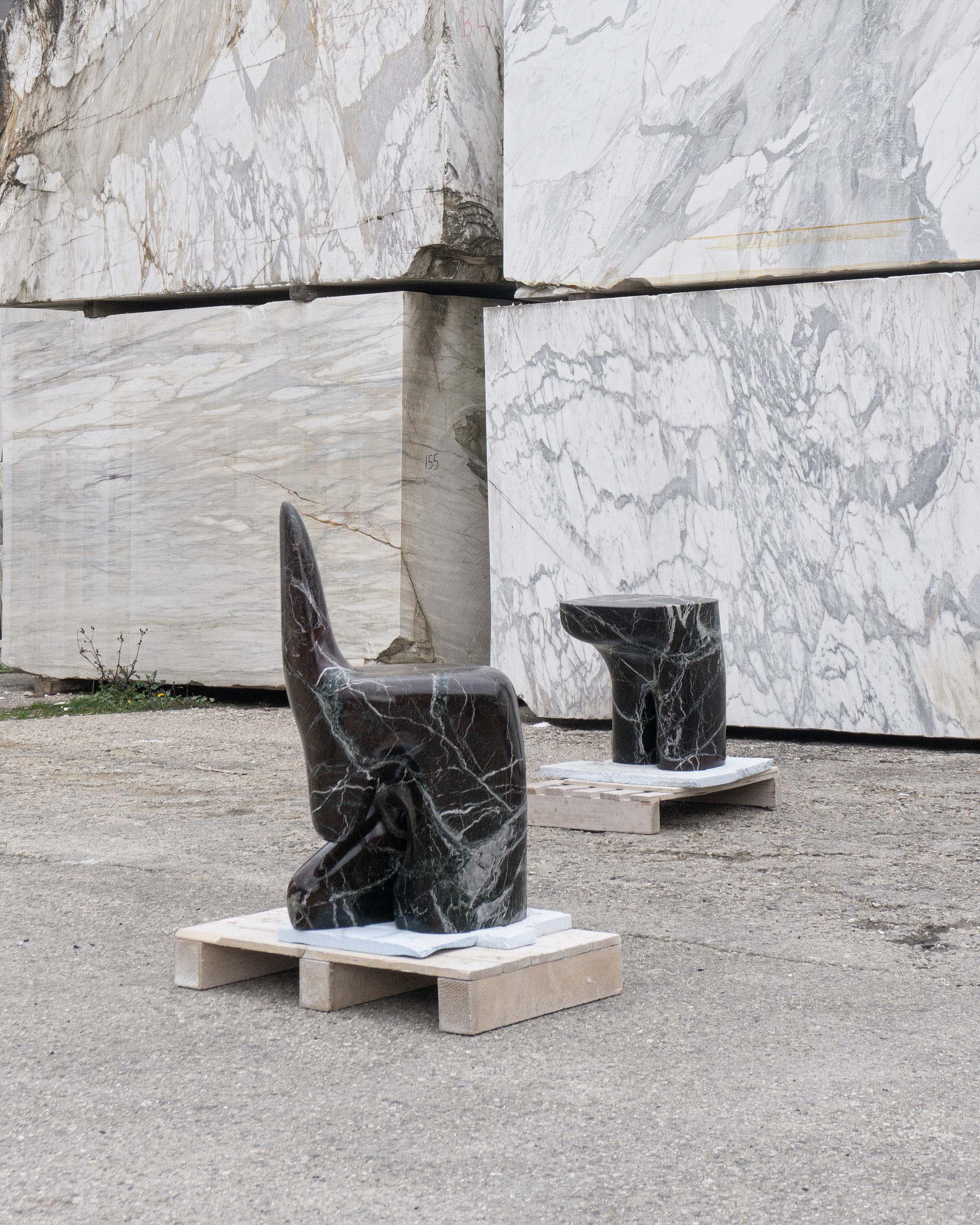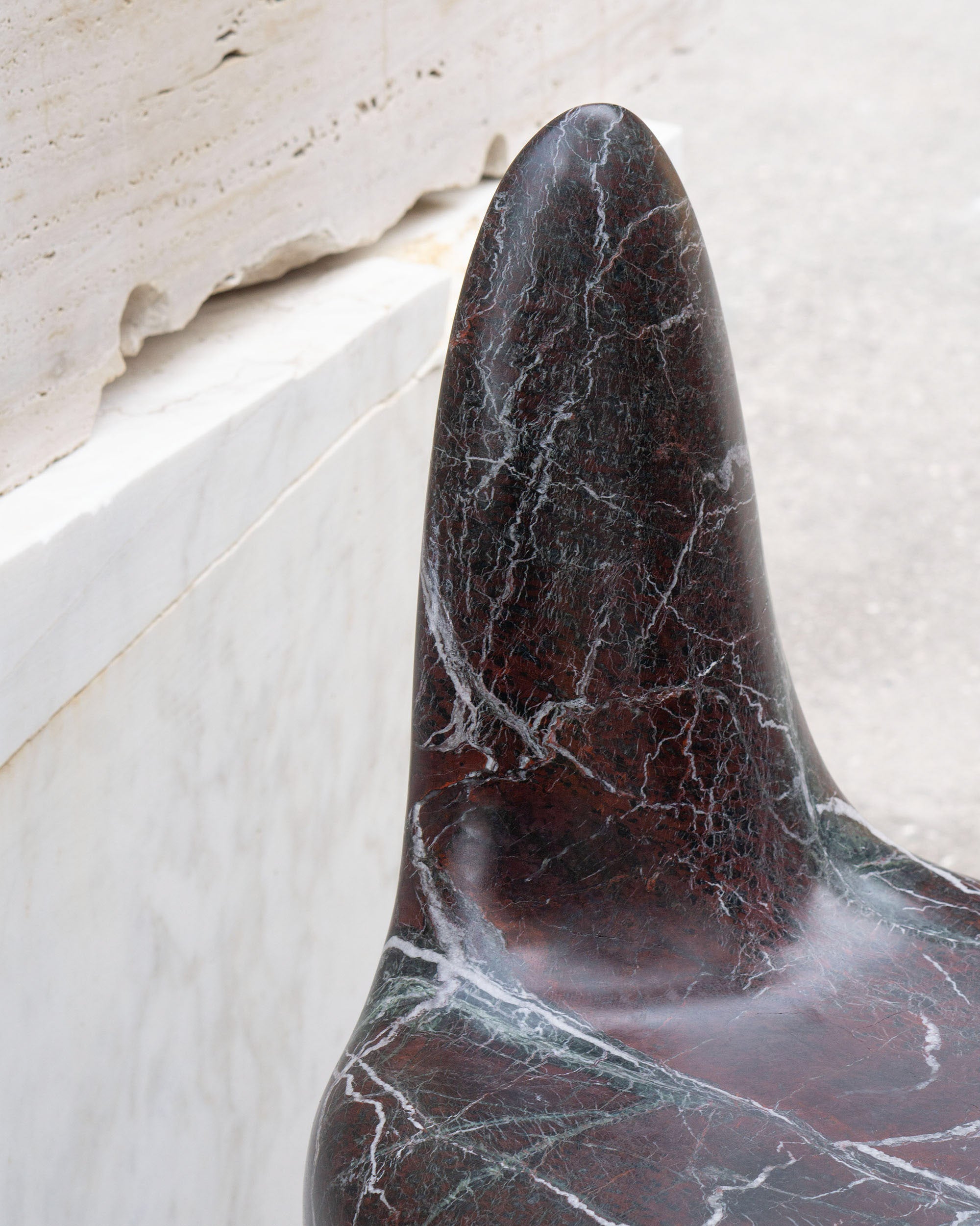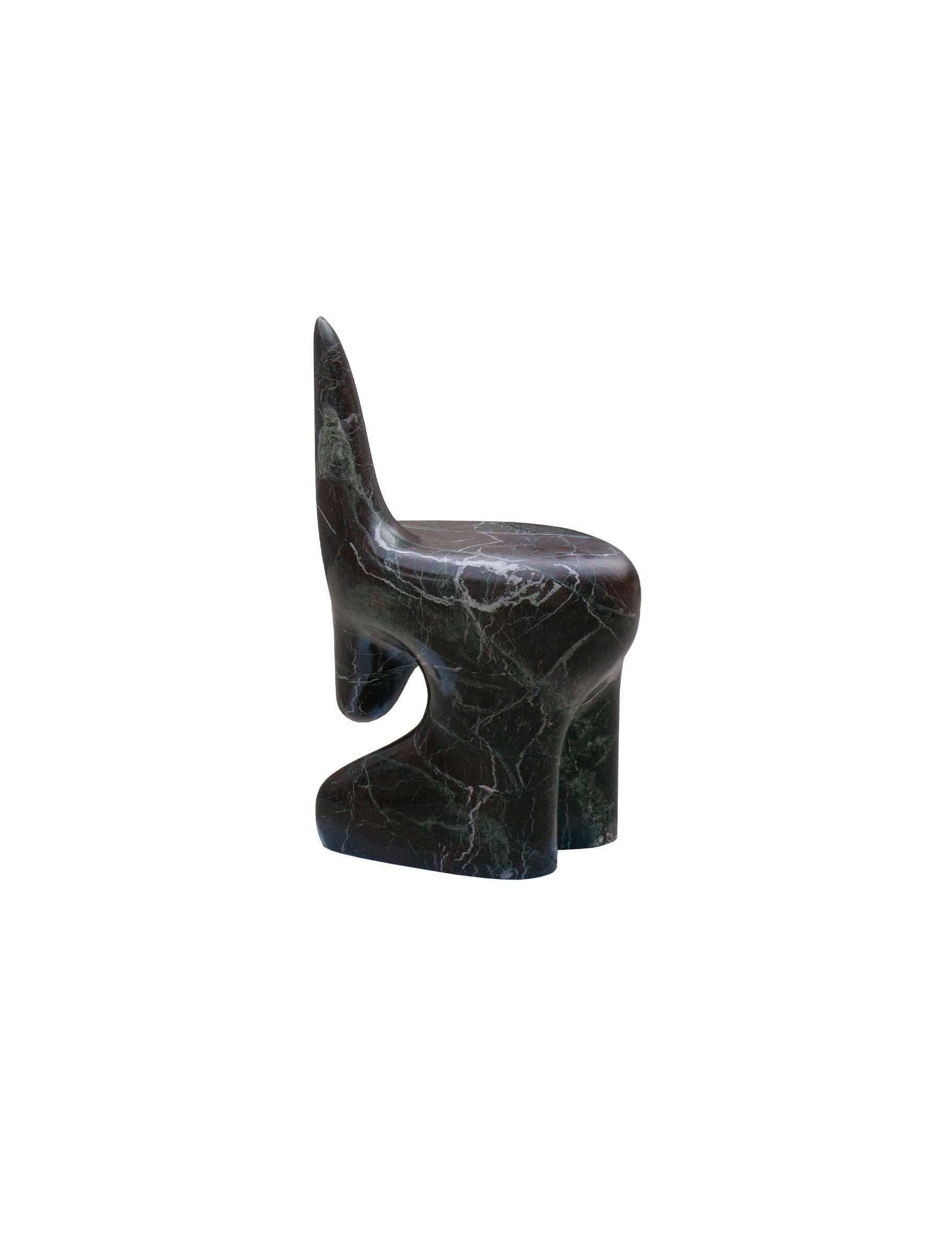 The Morphe Chair transforms the rigidity of stone into a fluid and enveloping form. Its design balances weight and lightness, and seems to defy gravity. A functional sculpture, the cold texture of marble and its unique veining invite touch, while its organic silhouette suggests movement. Here, the material comes to life in a dialogue between solidity and softness