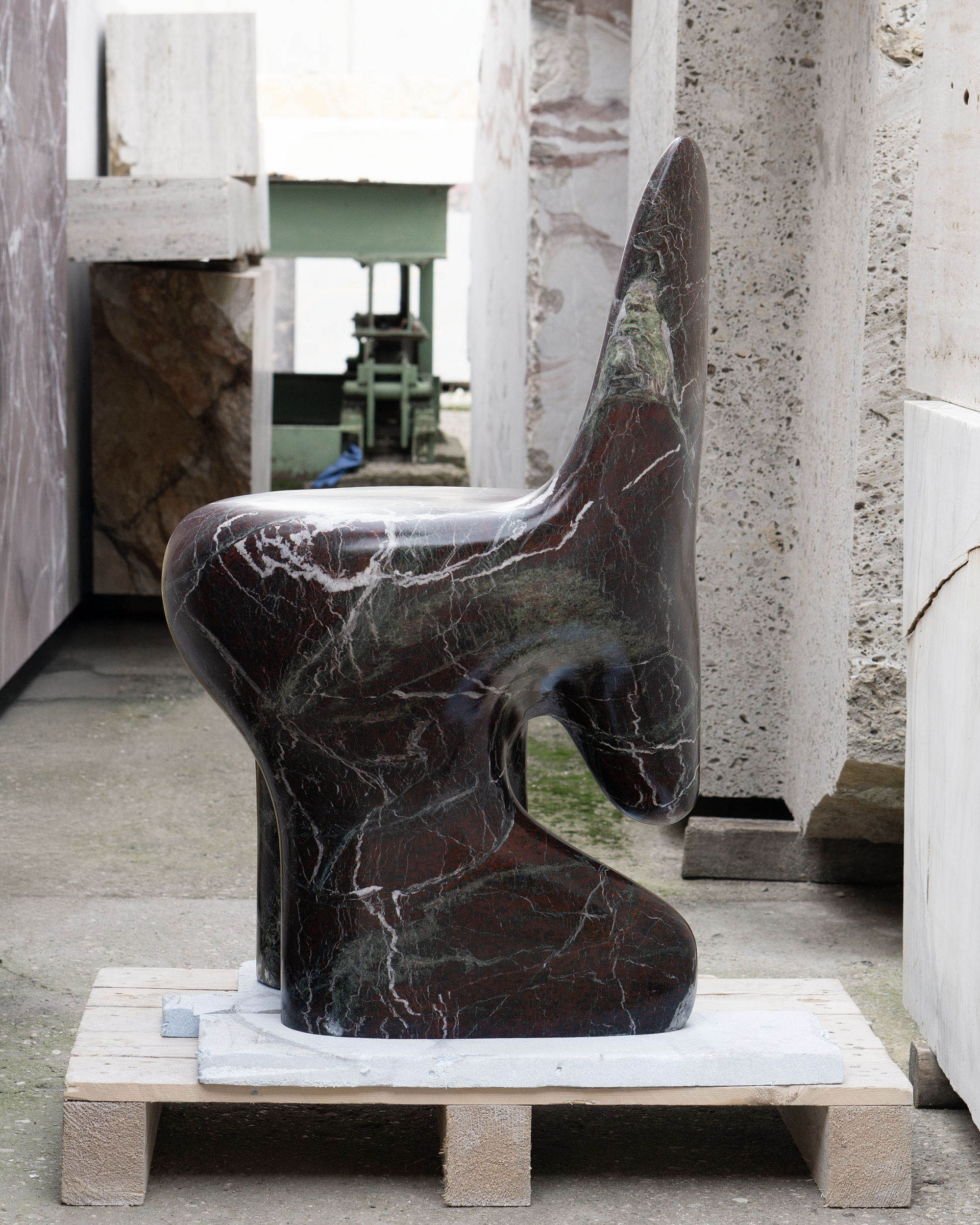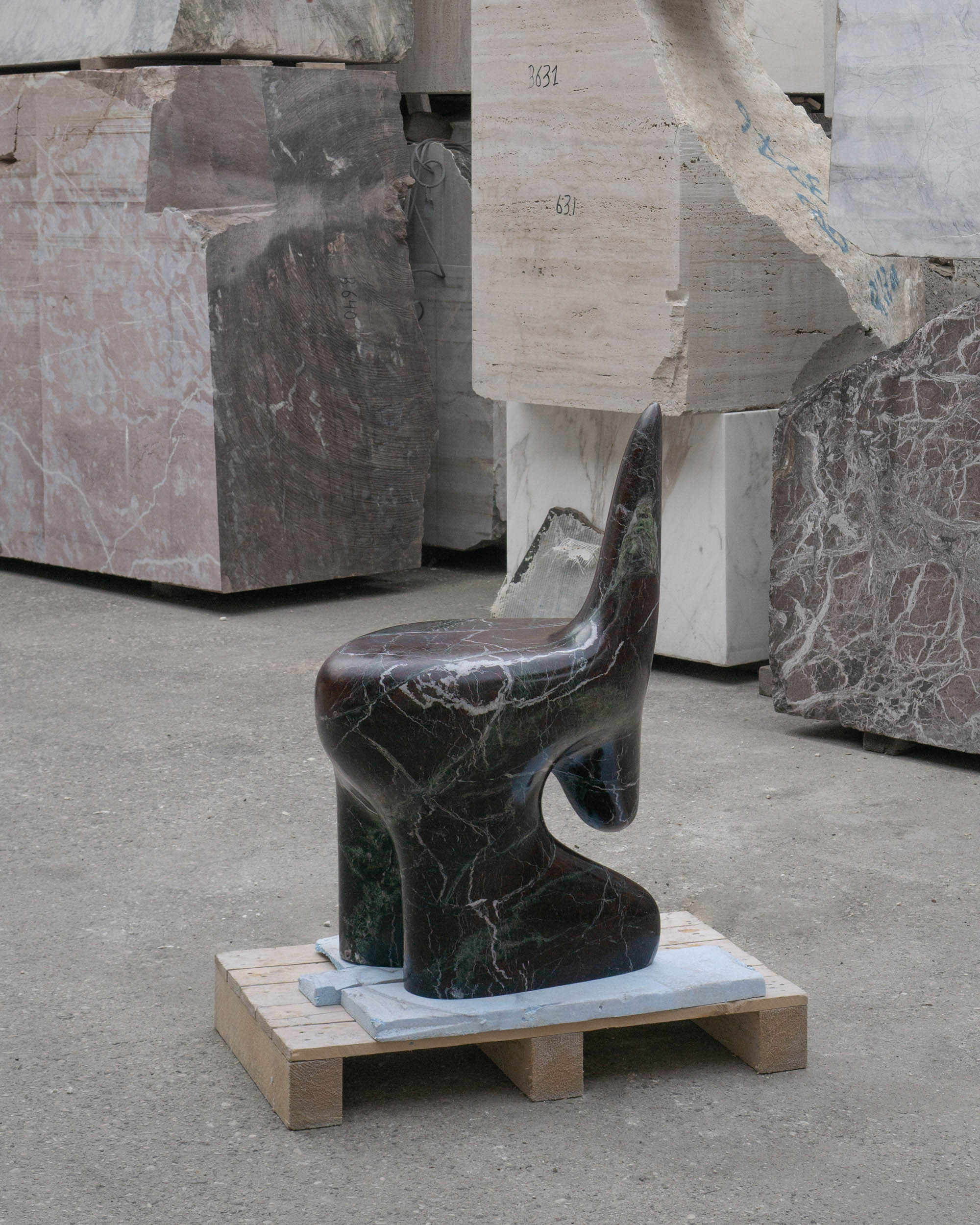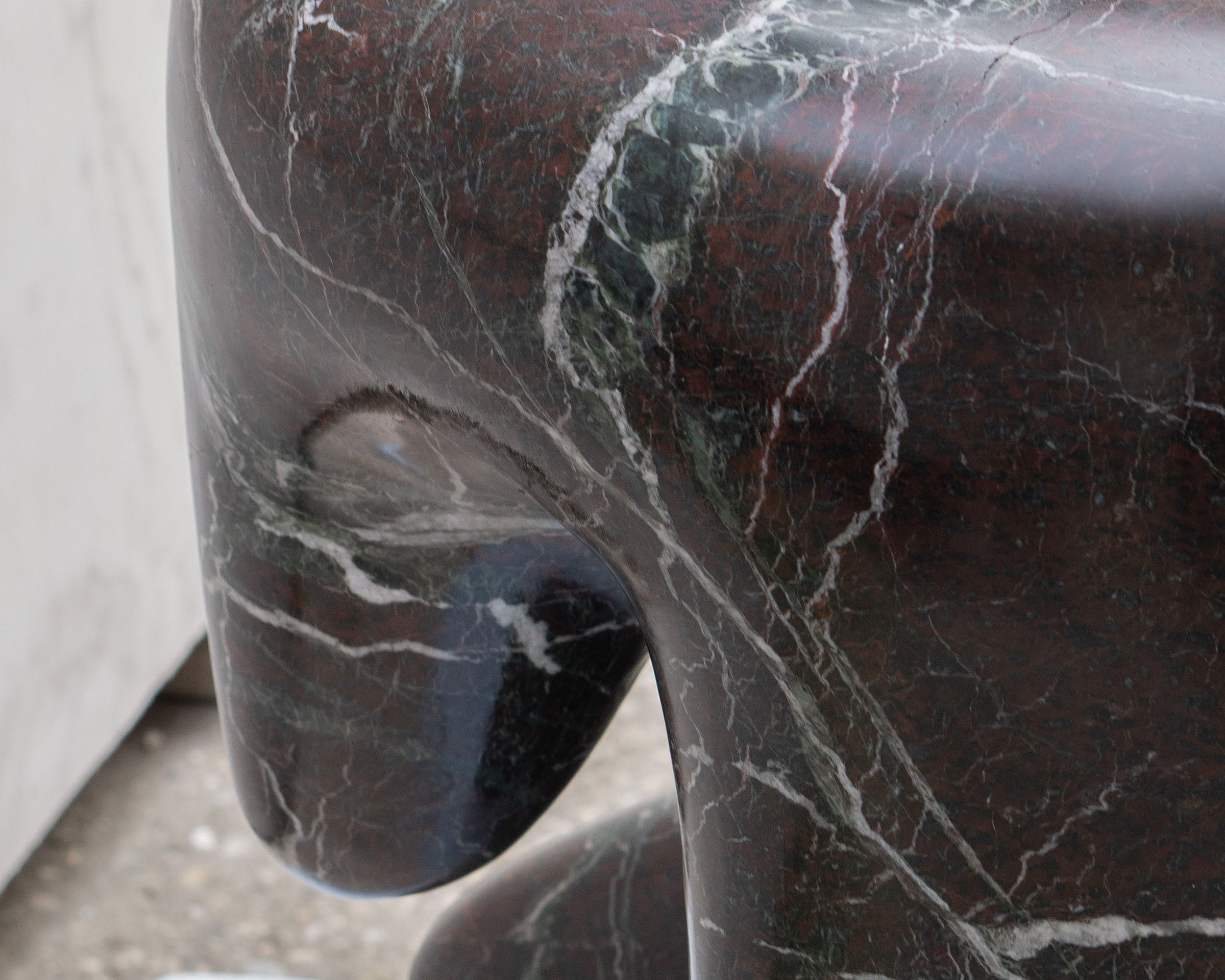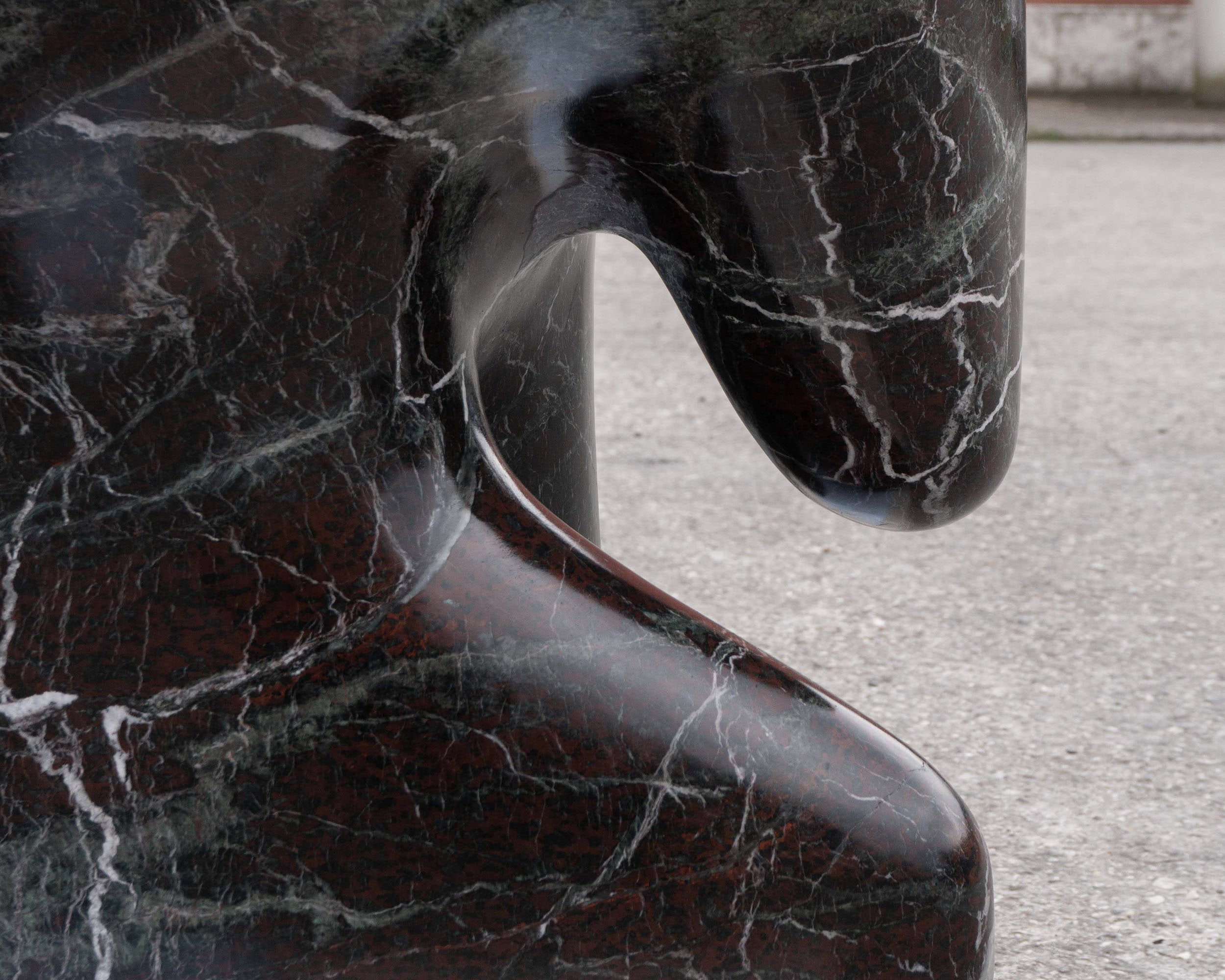 The Morphe Chair transforms the rigidity of stone into a fluid and enveloping form. Its design balances weight and lightness, and seems to defy gravity. A functional sculpture, the cold texture of marble and its unique veining invite touch, while its organic silhouette suggests movement. Here, the material comes to life in a dialogue between solidity and softness