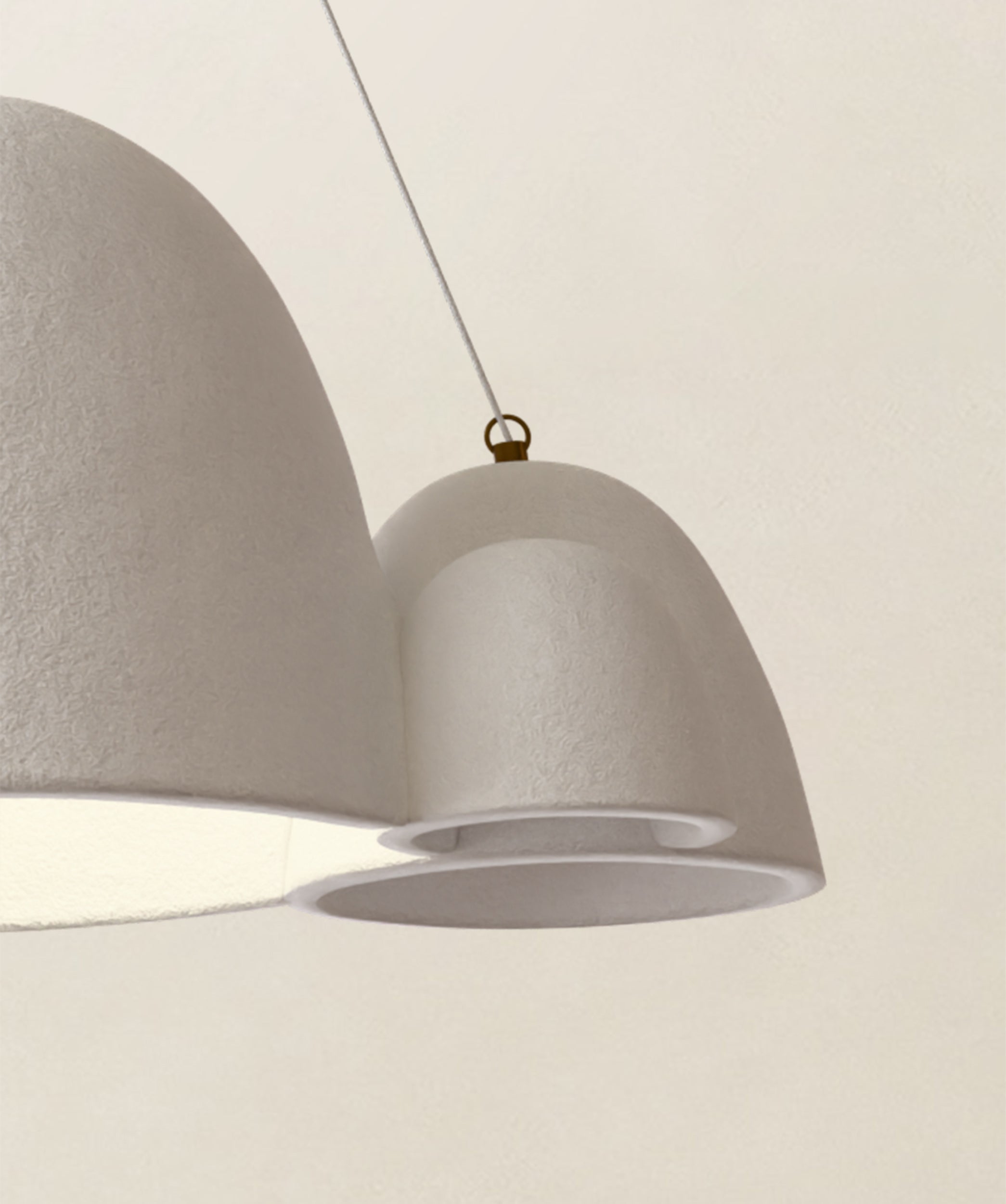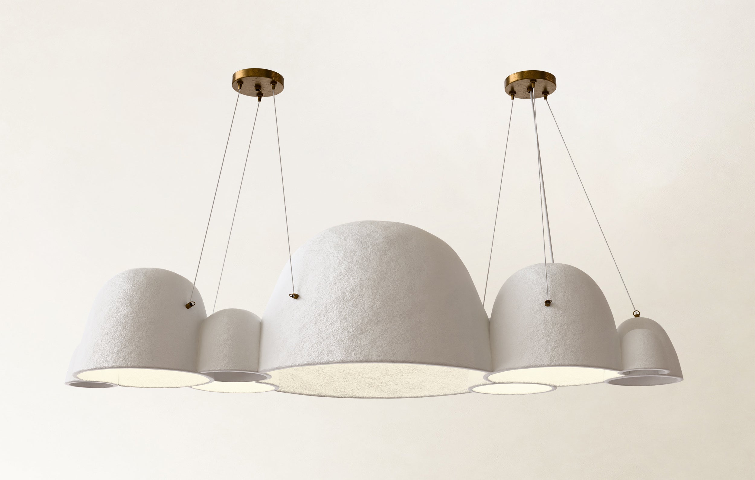 THE COLLINE LIGHTING COLLECTION by WARR is based on THE INTERCONNECTEDNESS OF LANDSCAPES THAT HAVE FORMED OVER THOUSANDS OF YEARS. IT FEATURES COMPOSED YET ORGANIC SHAPES THAT ARE ABSTRACT, DOMED, AND STRETCHED INTO ROLLING FORMS. THESE MOUND-LIKE STRUCTURES recall THE HILLS AND VALLEYS THAT PERMEATE warr’s homeSTATE OF GEORGIA. Each pendant in THE collection embodies TIMELESS ELEGANCE BLENDED WITH ORGANIC, CALMING, AND INNOVATIVE FORMS