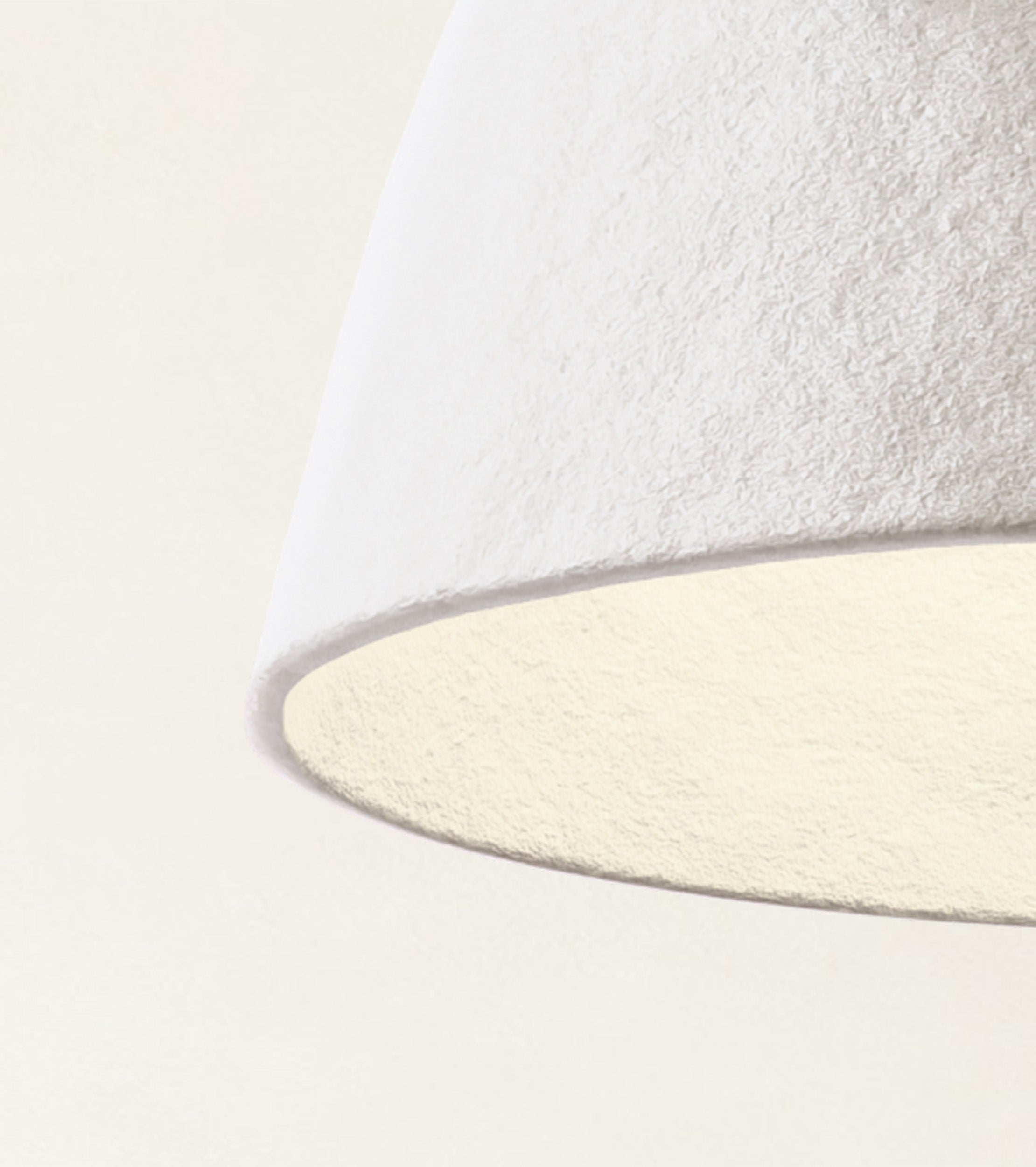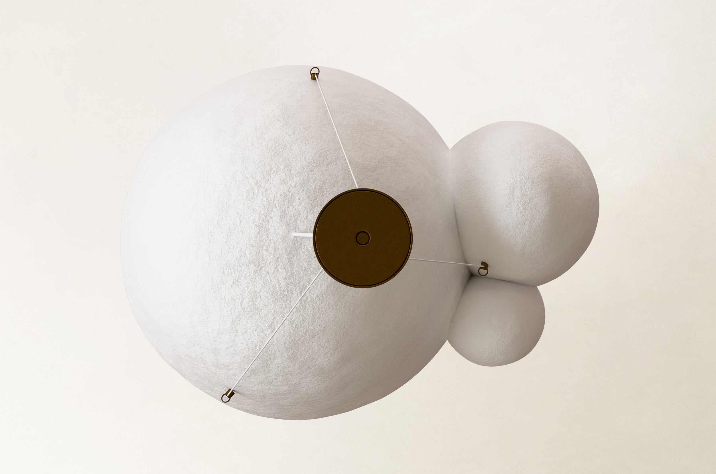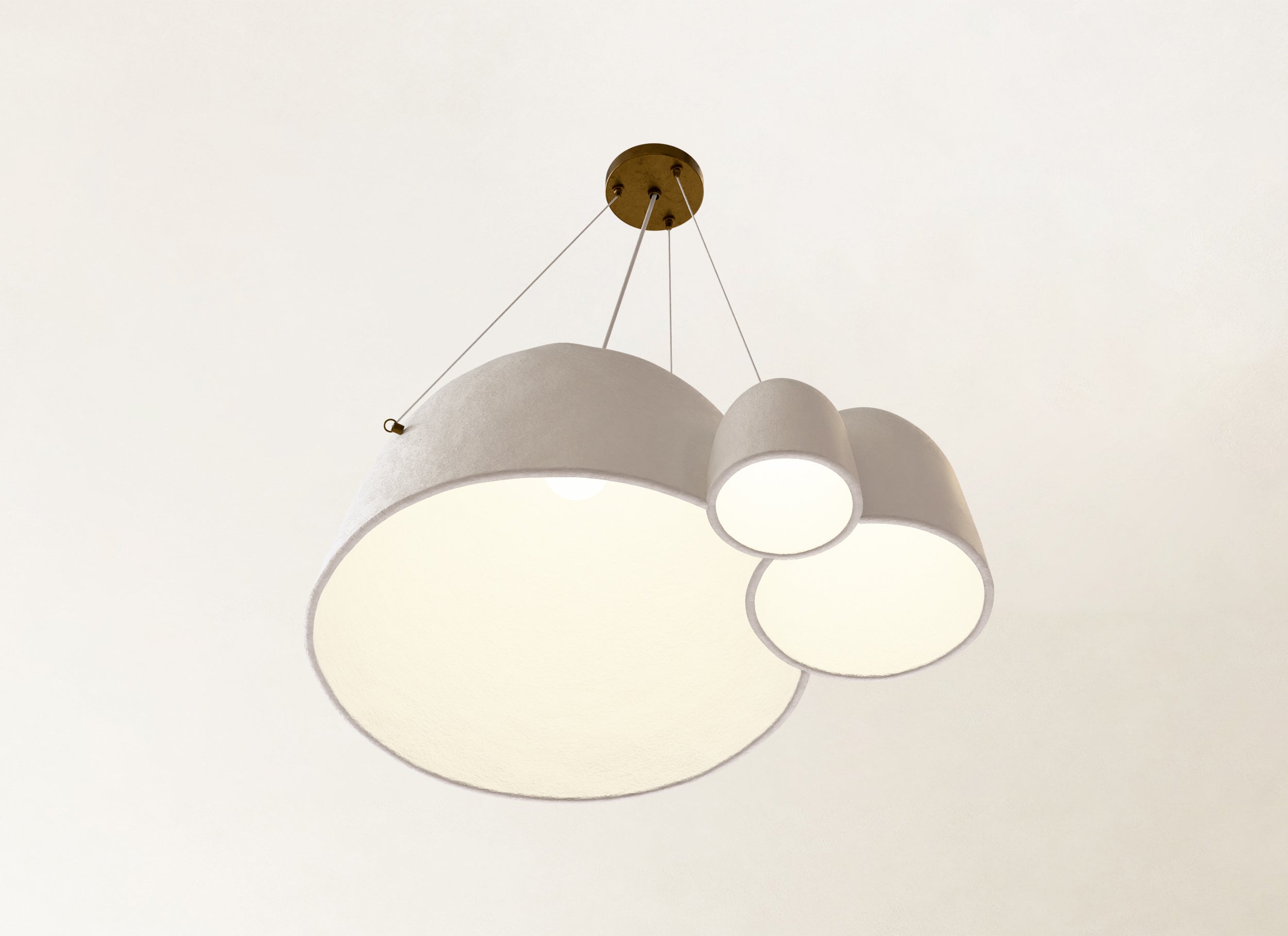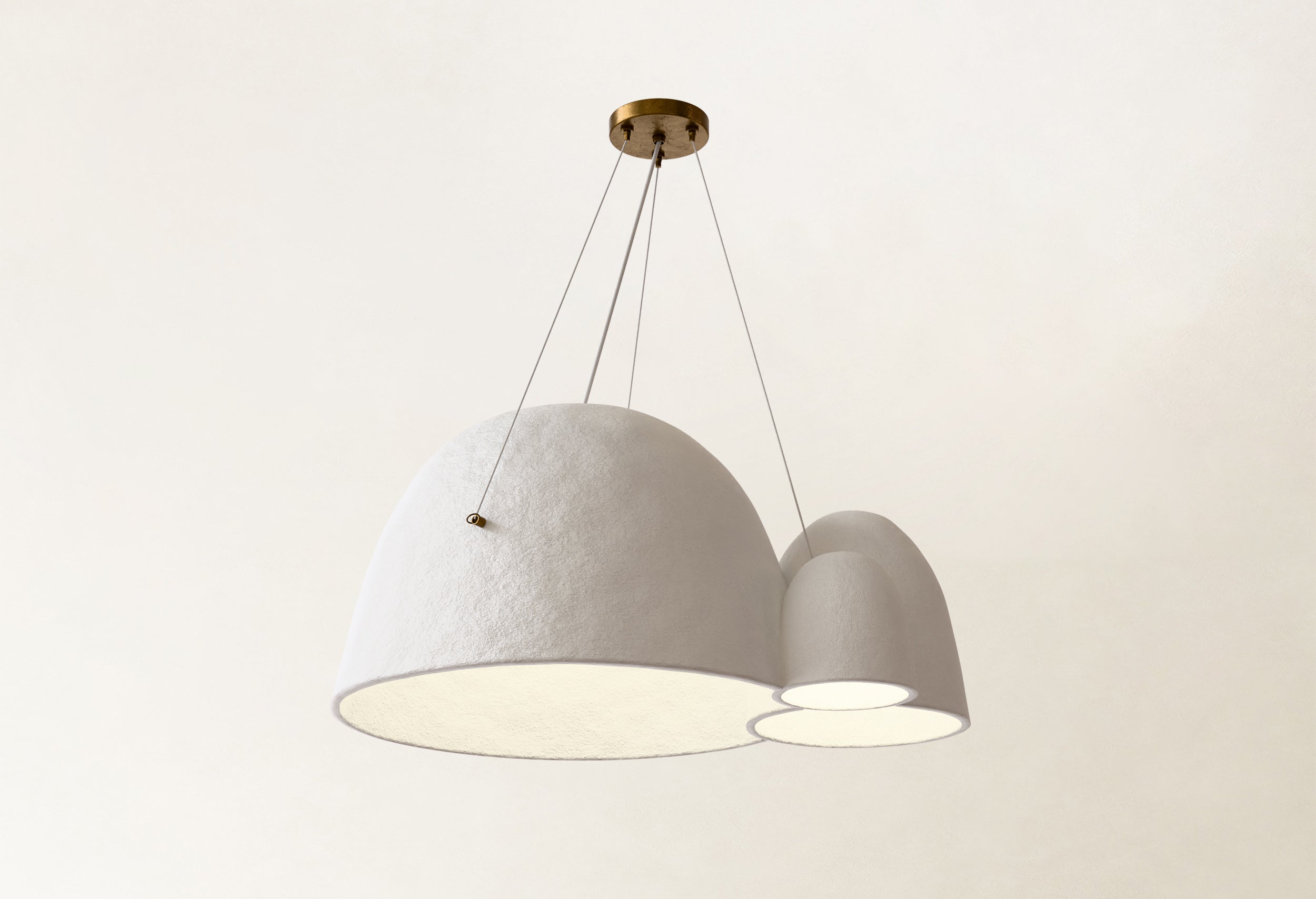 MADE BY HAND in the United States, each pendant is SCULPTED WITH A COMPLEX MIXTURE OF PLASTER, PULP, METAL, AND RESIN, with natural brass hardware. THESE MATERIALS ENSURE LASTING DURABILITY WITH A TACTILE FINISH. MADE TO ORDER, EACH work IS A NUMBERED EDITION, UNIQUE, and CUSTOMIZABLe