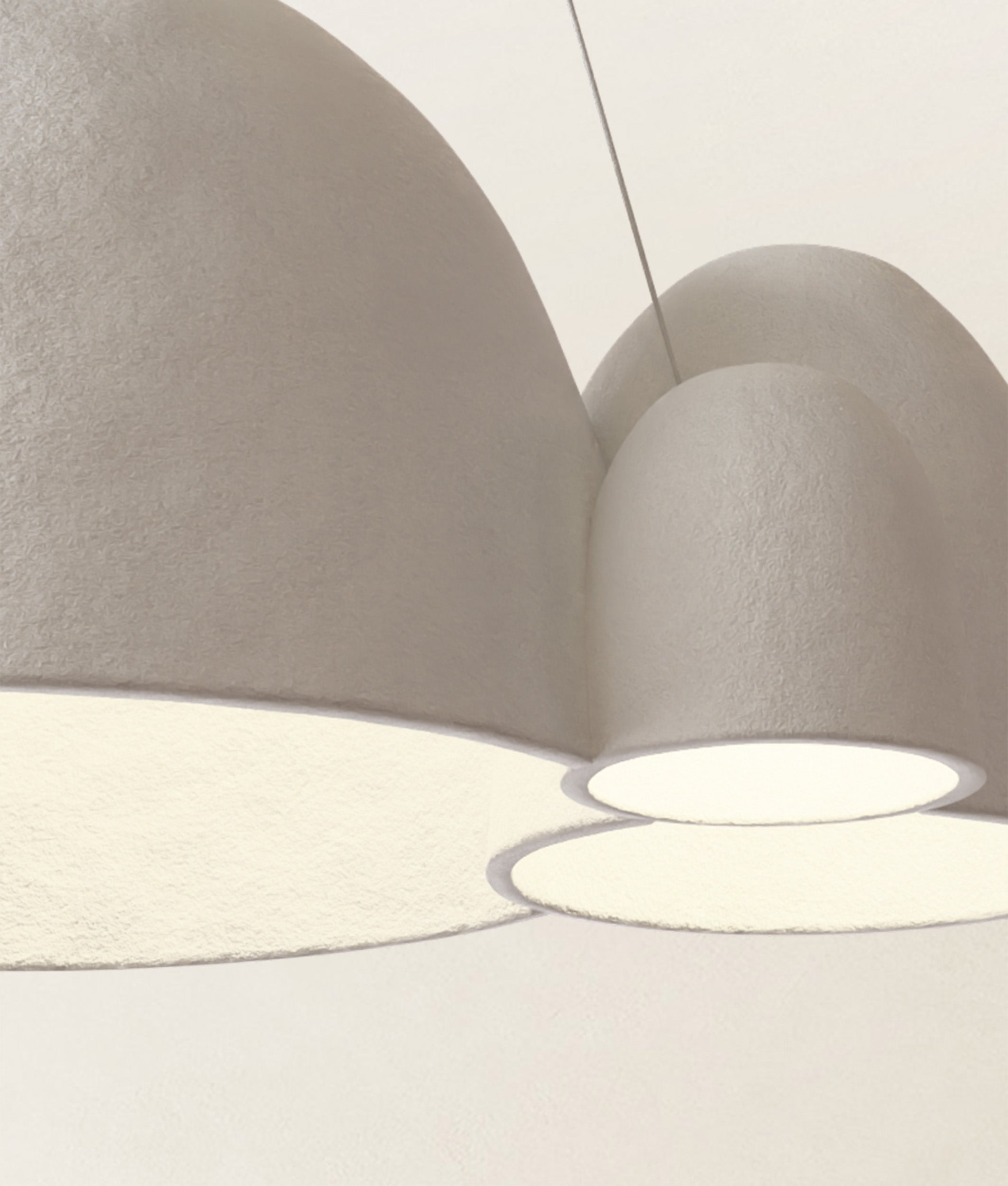THE COLLINE LIGHTING COLLECTION by WARR is based on THE INTERCONNECTEDNESS OF LANDSCAPES THAT HAVE FORMED OVER THOUSANDS OF YEARS. IT FEATURES COMPOSED YET ORGANIC SHAPES THAT ARE ABSTRACT, DOMED, AND STRETCHED INTO ROLLING FORMS. THESE MOUND-LIKE STRUCTURES recall THE HILLS AND VALLEYS THAT PERMEATE warr’s homeSTATE OF GEORGIA. Each pendant in THE collection embodies TIMELESS ELEGANCE BLENDED WITH ORGANIC, CALMING, AND INNOVATIVE FORMS