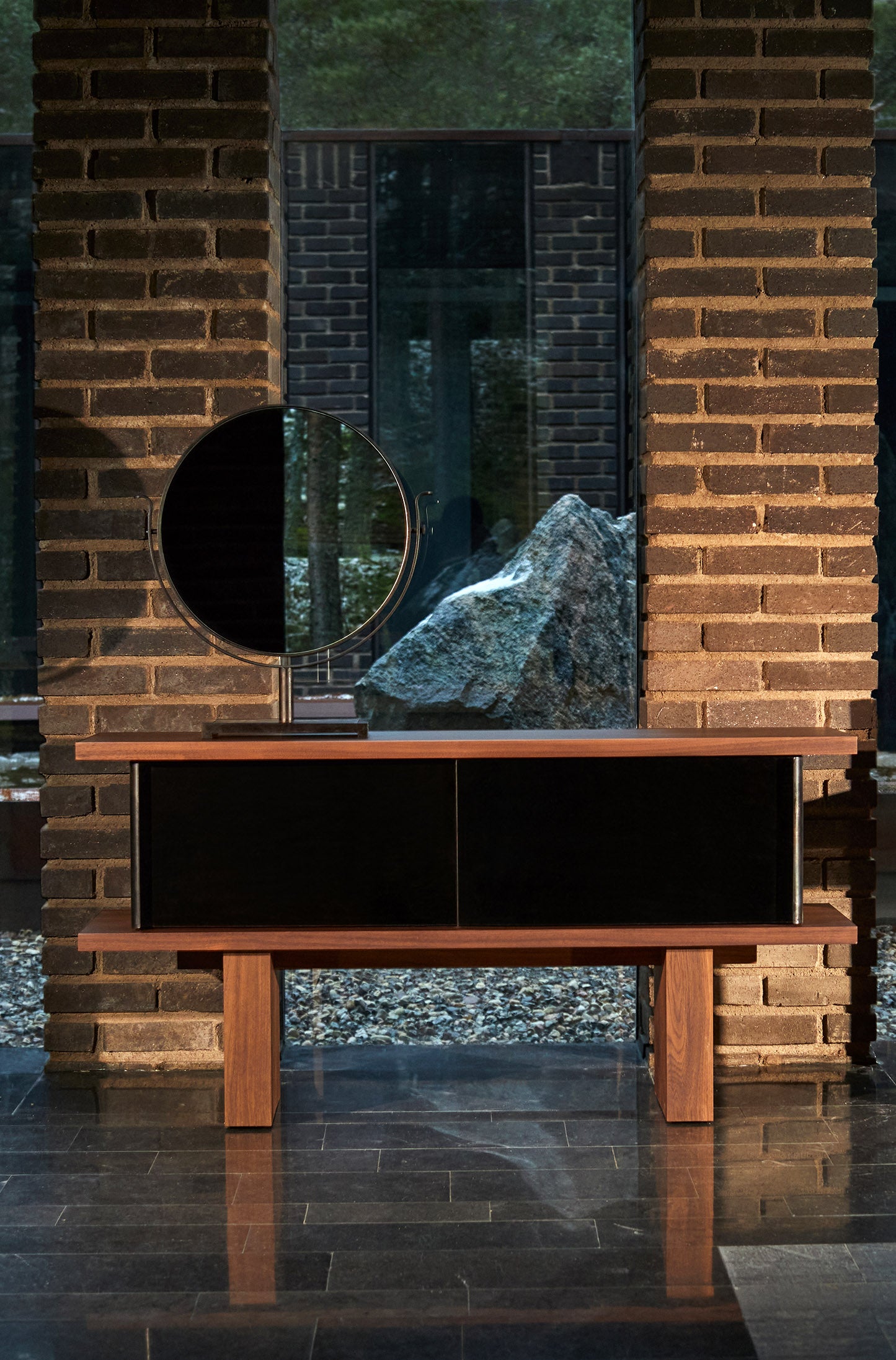 With a focus on long-lasting natural materials and exquisite craftsmanship, Louise Liljencrantz's design pays great attention to every detail in the process, balancing mid-century modern influences with a contemporary language. The Case Sideboard combines strong volumes with a floating design in walnut or mahogany finished with a satin clear coat and steel burned in linseed oil