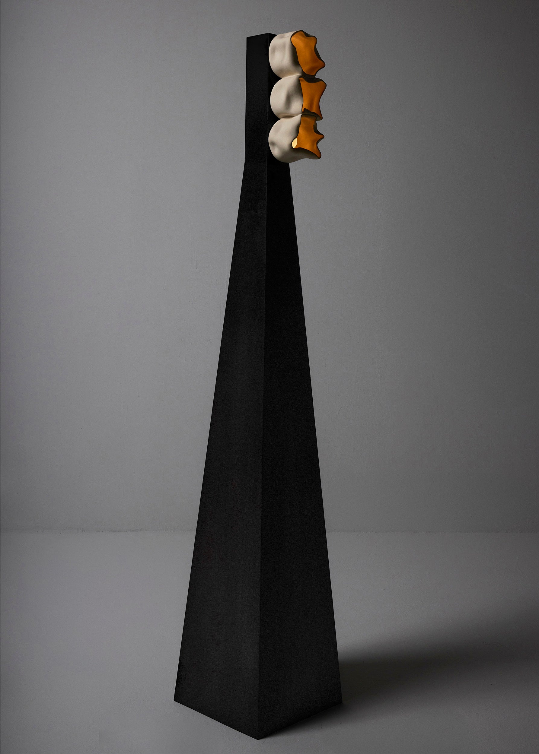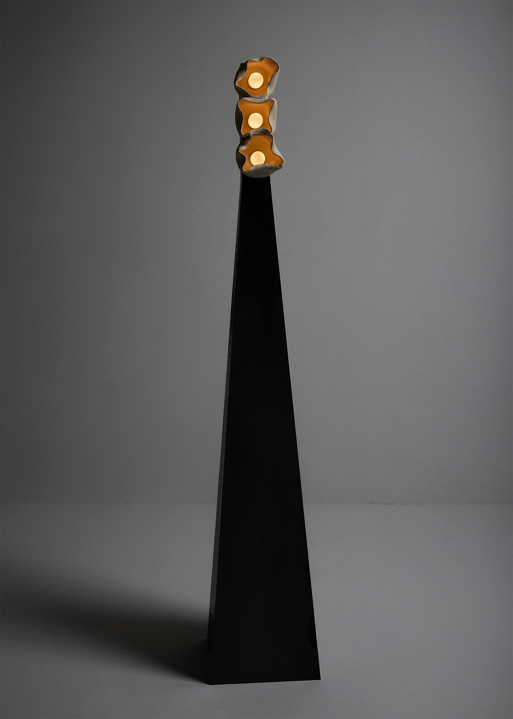 An evocative exploration of nature’s cycle of death and renewal, Vessels captures the transient beauty of natural decay while celebrating the enduring power of light as a source of life and inspiration. In this sculptural lighting series in handcrafted ceramic and brass, Nader Gammas challenges traditional notions of lighting design by embracing imperfection and individuality. Drawing inspiration from Gammas’ encounters with fallen trees in the Blue Hills Reserve of Massachusetts, the series translates the life that flourishes in decay—particularly fungi of the Sarcoscypha genus—into sculptural light objects