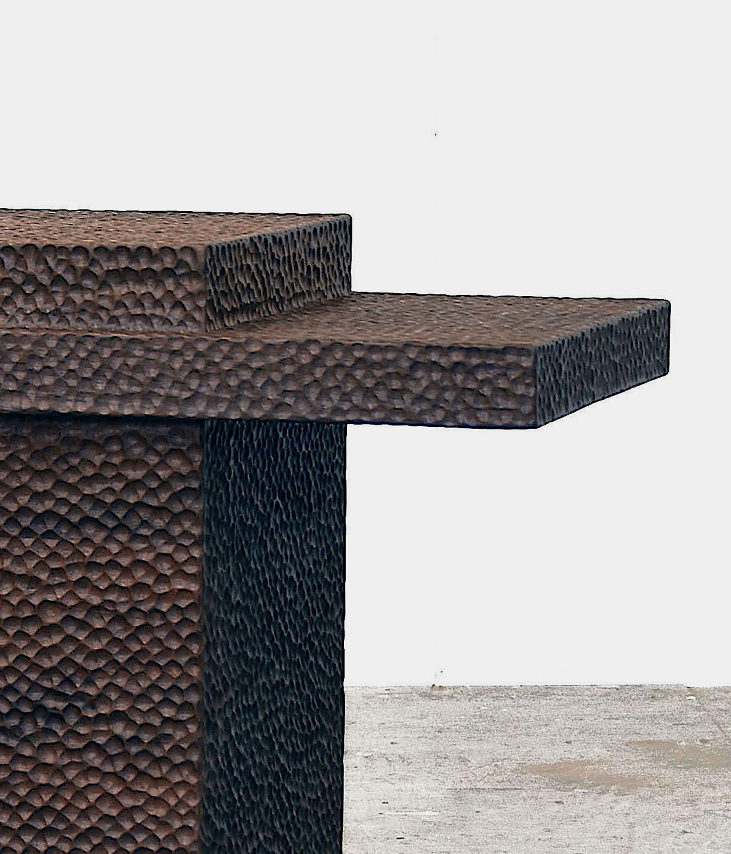 Known for the meticulous craftsmanship of his hand-carved, solid hardwood furniture and objects, Byers is a leading figure of a new generation of studio wood artists. Byers strives to use the purest, most universal textures and geometric shapes—the circle, square, rectangle, cylinder, ellipse, and sphere—whose densely patterned, rigorously carved surfaces are combined with layers of milk paint. Mastering his uniquely original aesthetic over nearly four decades, Byers’ hand-made work is guided by purity in form, texture, structure, and respect for use of materials and is noted for its geometry, minimalism, emotionality, and refinement