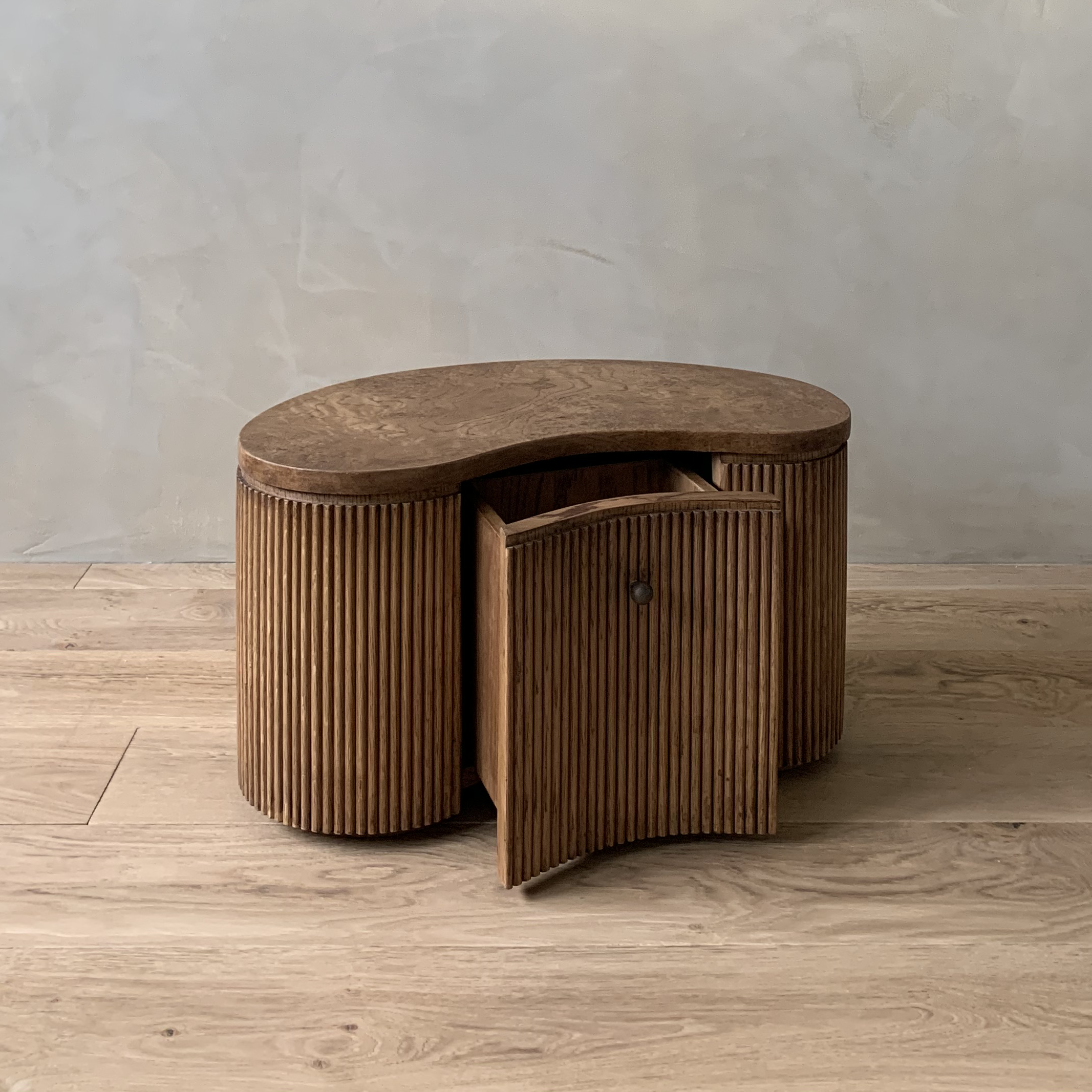 A French-Israeli architect and designer, Simon composes immaculately curated, resolutely modernist pieces that reflect her heightened sense of refinement, keen eye for detail, and passion for craftsmanship. Drawing on Art Deco style and Wabi-Sabi philosophy, she exposes the raw beauty of materials with her precise, sophisticated, and simple designs. With a singularly detail-oriented aesthetic, Simon uses space and light to mold volumes and highlight textures with a poetic economy of design