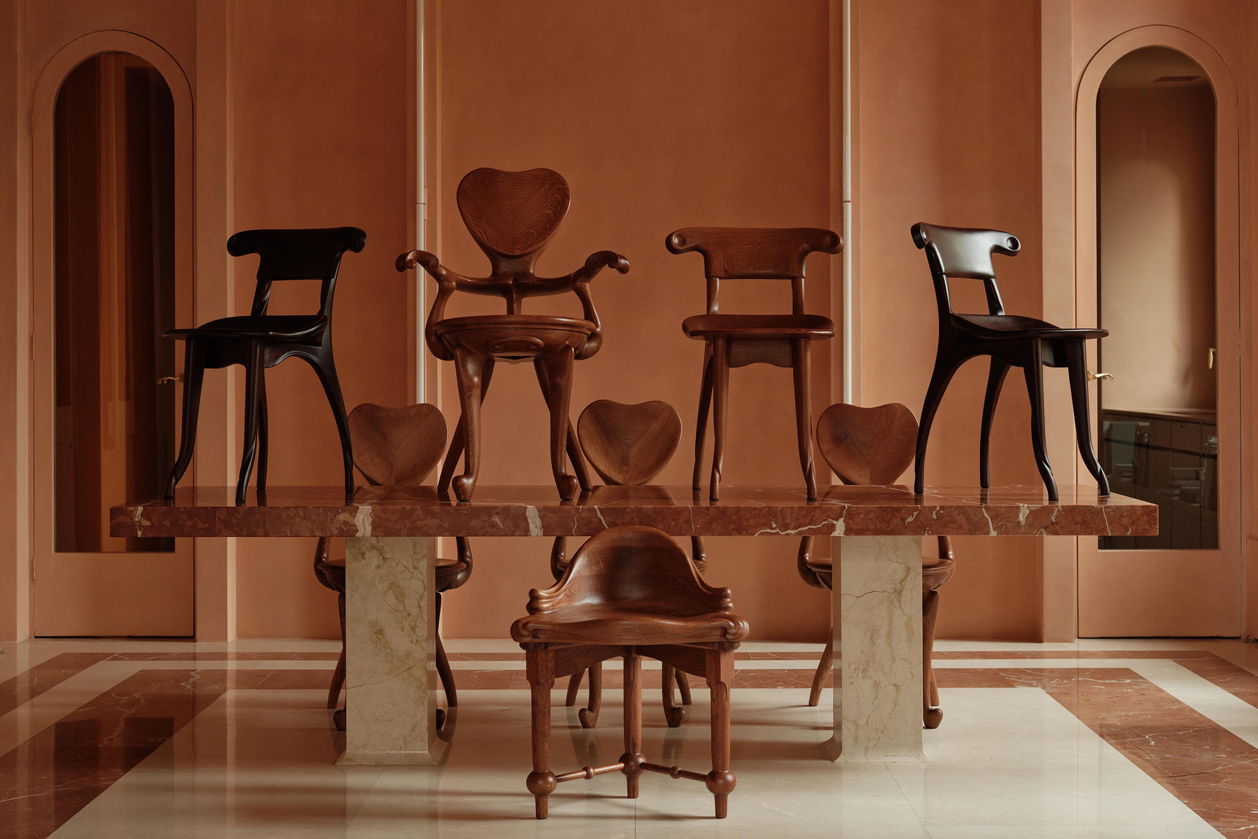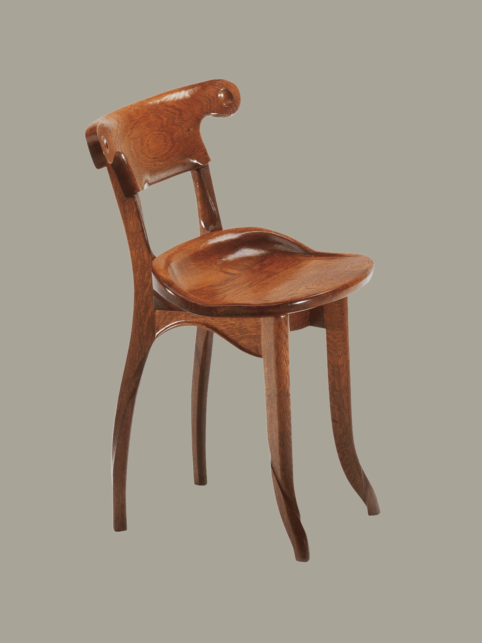 Within this narrative, the chair’s skeletal, almost bony structure echoes the building’s undulating façade, the ridged, scale-like roof, and the fluid wrought-iron balconies. Its form appears carved rather than assembled, reinforcing Gaudí’s conception of furniture as an organic extension of architecture rather than a decorative addition
