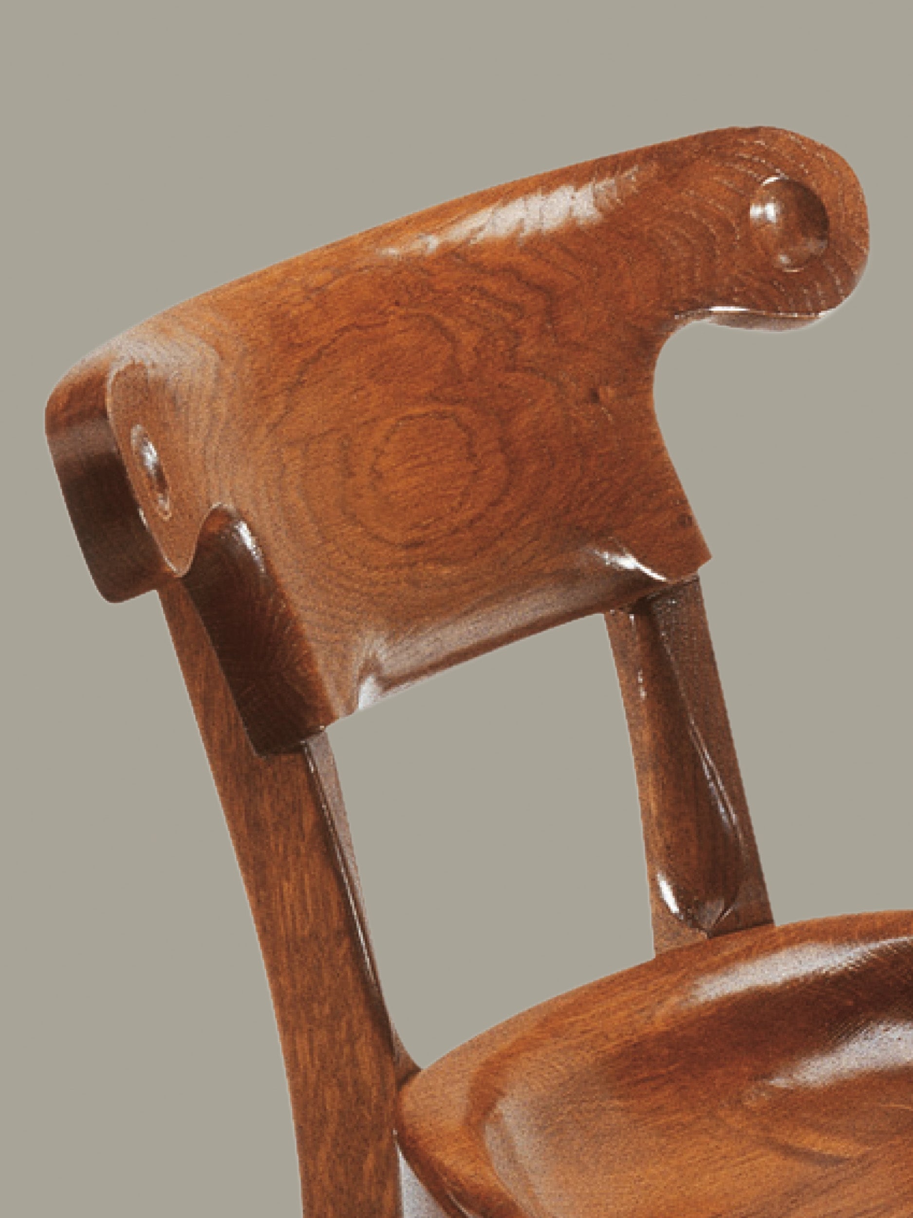 Designed for the dining room of Casa Batlló, completed in 1906, the Batlló Chair is one of Gaudí’s most iconic furniture designs, distinguished by its sweeping curves and unexpected comfort. At once abstract and deeply intentional, the chair forms part of a larger symbolic universe in which Casa Batlló is often interpreted as an allegory of Saint George, the patron saint of Catalonia, and his victory over the dragon