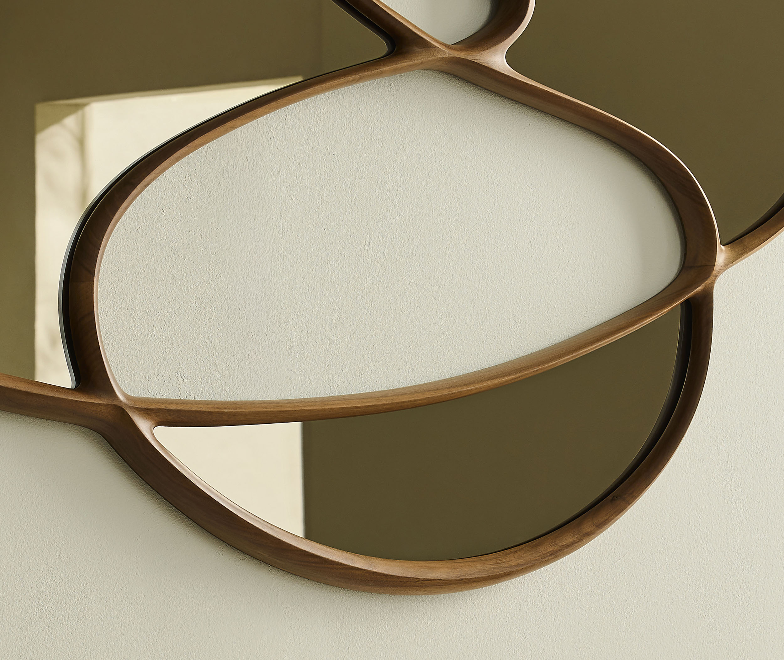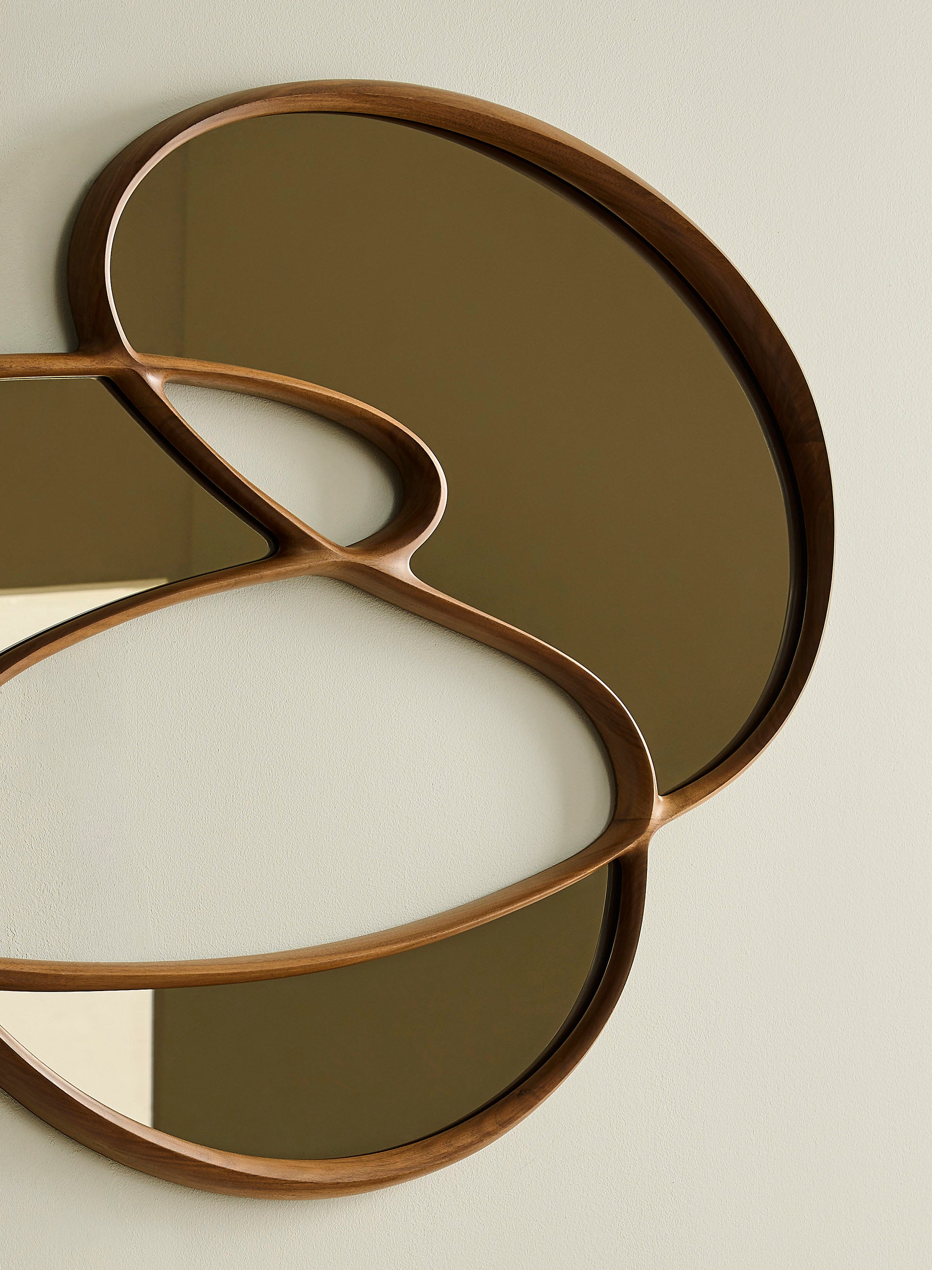 the Dynamic Mirror Collection by Soo Joo is a refined investigation into asymmetry, materiality, and the expressive potential of form. These sculptural mirrors embody the convergence of traditional aesthetics and contemporary experimentation, forged through an intimate engagement with nature, personal memory, and traditional ink calligraphy