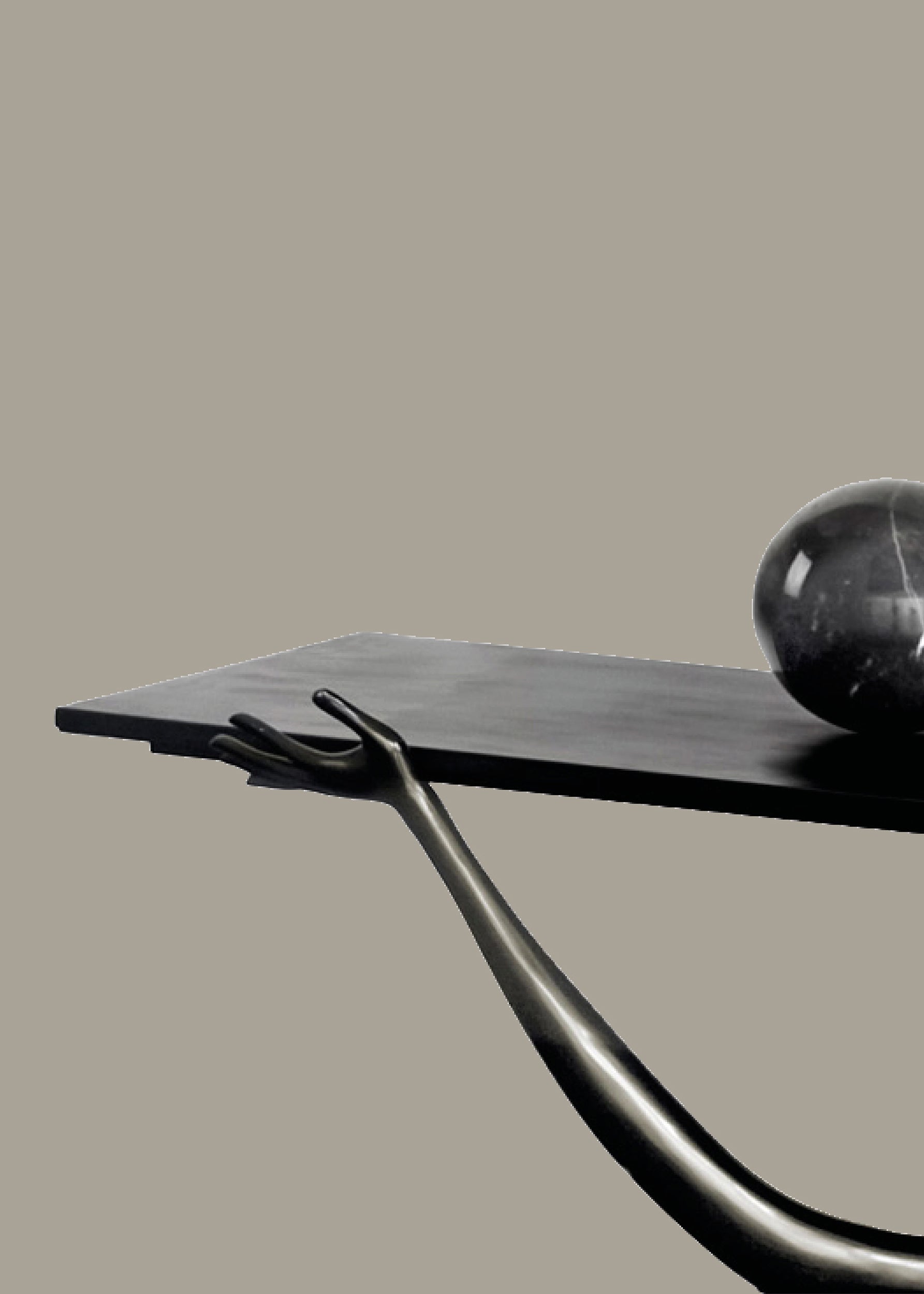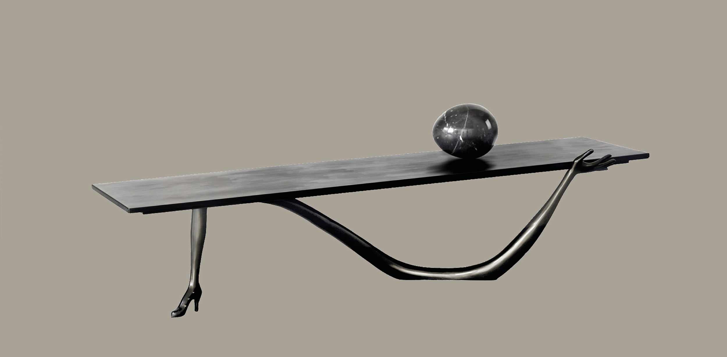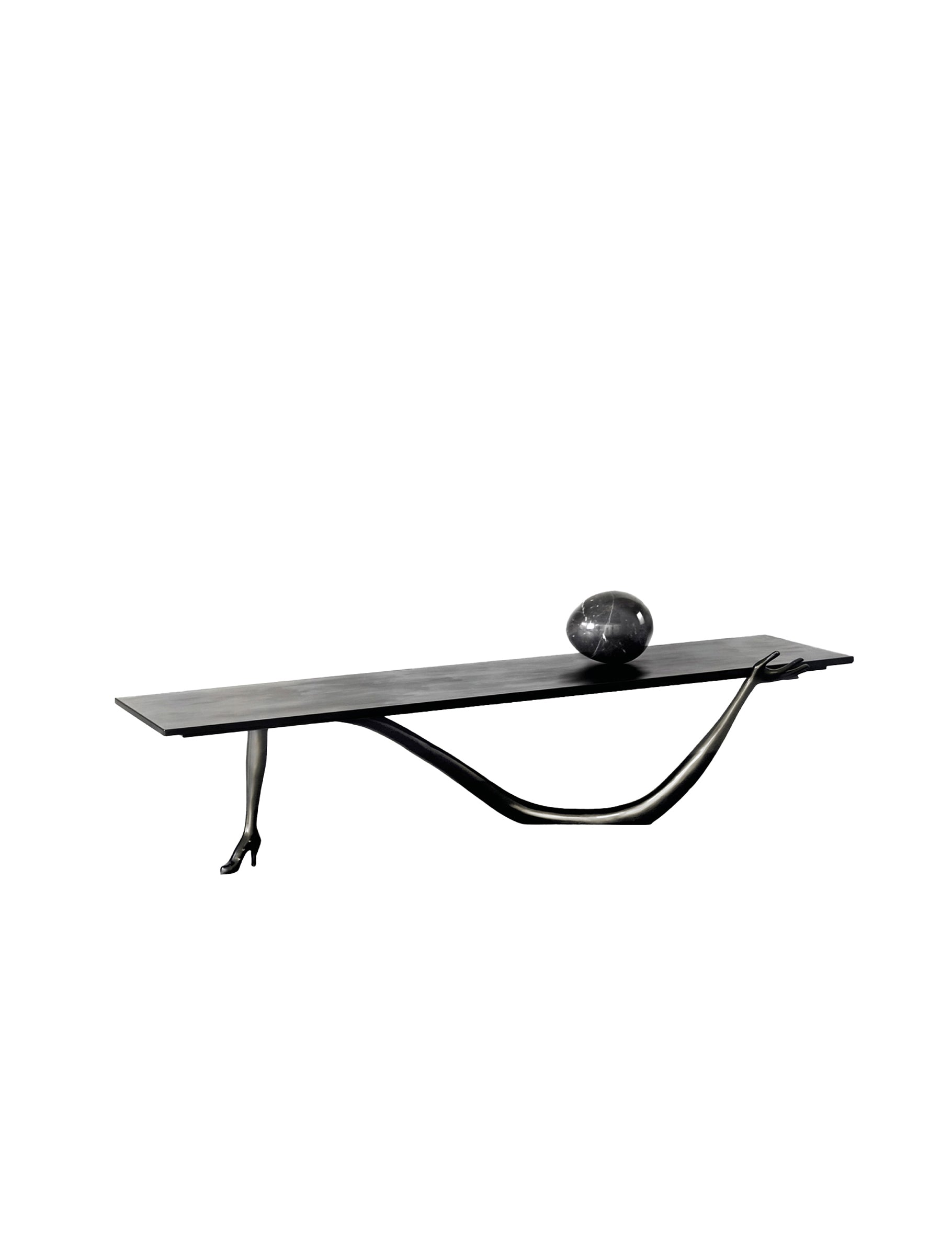 Resting atop the surface is a marble egg, a recurring symbol in Dalí’s work associated with birth, transformation, and latent energy. This detail reinforces the table’s conceptual depth while introducing A moment of material contrast and symbolic focus