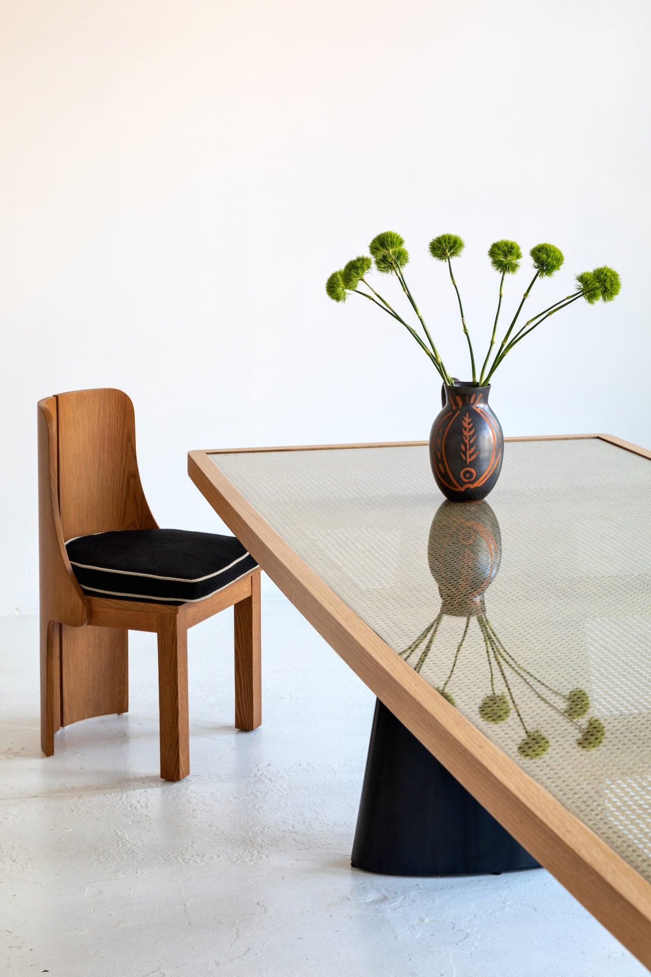 Ruemmler principals Ariel Ashe and Reinaldo Leandro draw on their backgrounds in set design and architecture to craft spaces with clear narratives referencing art, design, and culture. Whether the context is residential, commercial, or communal, the designers explore the relationships between the project and its surroundings, mixing natural materials in different textures and patterns to create beautiful, distinctive interiors. Drawn to the tension between the clean and minimal architecture and the more organic shapes of the furniture, Ashe and Leandro are guided by an aesthetic philosophy of instinct, humor, and honesty