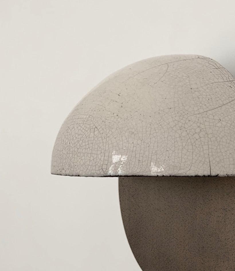 Honoring the Wabi-Sabi aesthetic tradition that finds beauty in imperfection and impermanence, Emmanuelle Simon’s Raku Yaki collection brings a serene contemporary sensibility to the ancient Japanese ceramic technique of Raku. Dating back over four hundred years, the unusual Raku process subjects ceramic to extreme stress with high heat and rapid cooling to create dramatic and singular surface variations of the glaze
