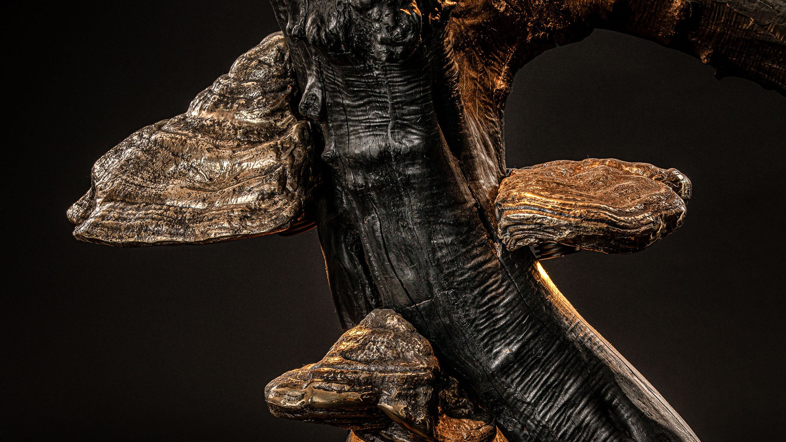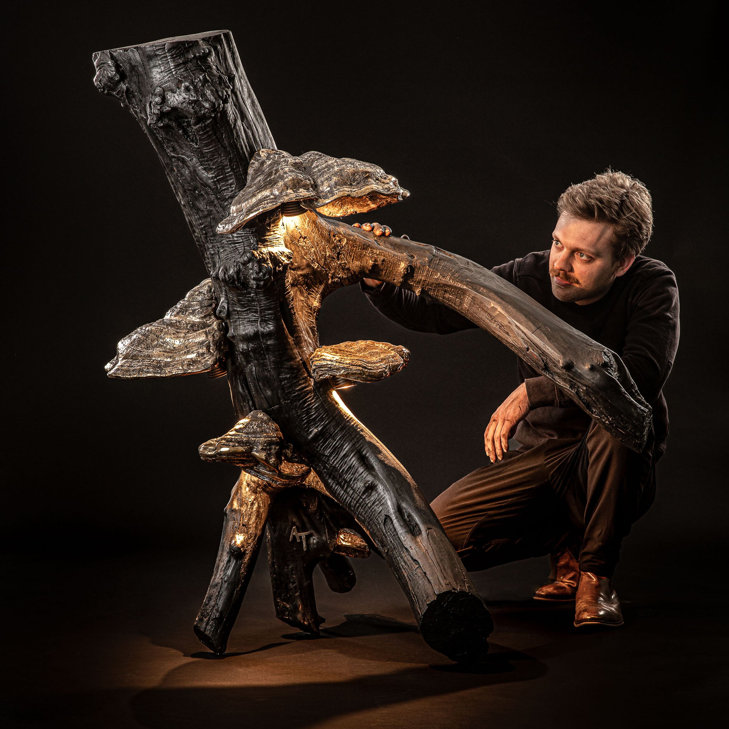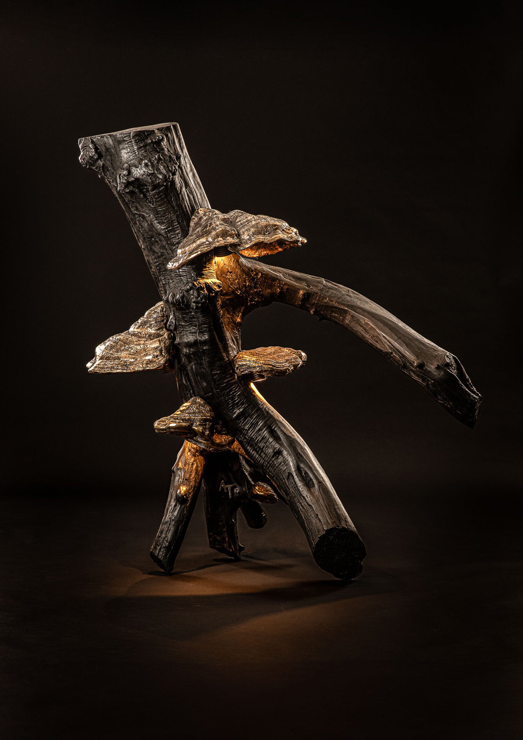The artistic process behind the Tondel lights reflects Tourain’s deep engagement with the natural environment and a commitment to preserving its essence in a new form. The careful casting of real fungal elements and the thoughtful assembly on brass branches highlight his dedication to capturing the authentic beauty and complexity of these organisms, while his mastery of brass lends a sense of timelessness, juxtaposing the ephemeral nature of decay with enduring craftsmanship
